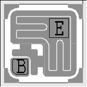芯片背極為集電極,基極與發(fā)射極的鍵合點(diǎn)位置見(jiàn)右圖